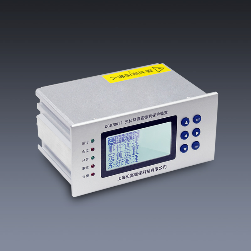 CGS7001T光伏防孤島保護(hù)裝置適用于光伏電站的小電源并網(wǎng)供電系統(tǒng)。一般安裝于光伏并網(wǎng)柜內(nèi)。主要針對(duì)光伏電站中由于電壓或頻率等異常引起的孤島現(xiàn)象,當(dāng)電網(wǎng)側(cè)或者光伏本側(cè)任一側(cè)失電的時(shí)候,防孤島保護(hù)裝置會(huì)迅速向并網(wǎng)斷路器發(fā)出跳閘信號(hào),讓斷路器分閘,保證了光伏兩側(cè)檢修人員的安全。